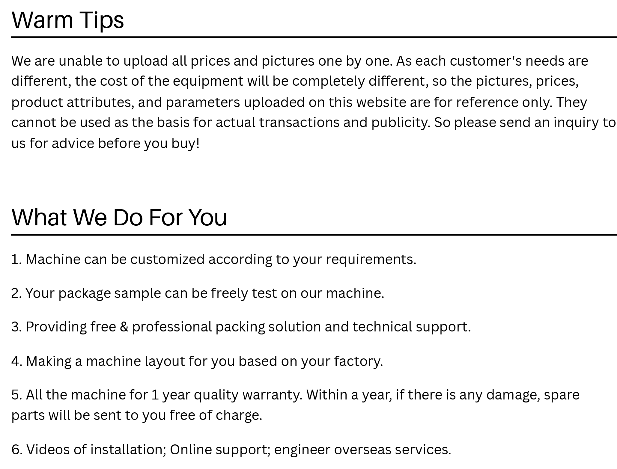 All the products before delivery should be tested by assemble and debugging engineer, wiped up and cleaned, the wrapped by stretch film to protect it from moist. The precision part needs flexible package. In addition, without standard tools, manual and other documents, and allow ex-factory confirmation sheet, the machine cannot leave factory. All the products will be packed in wooden case. The exported products use plywood case to pack. The foot margin of equipment fixed tightly to make the machine can experience loading and uploading, the upward mark will be posted on the wooden case.