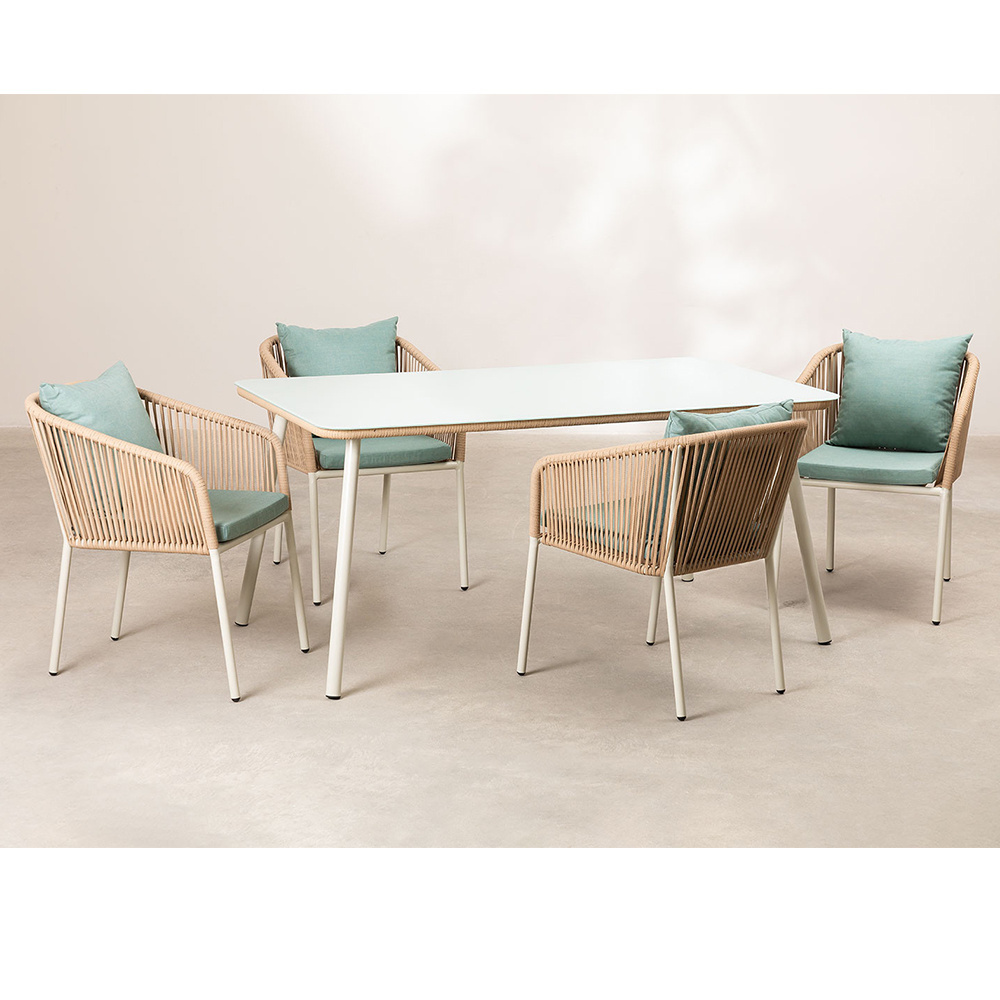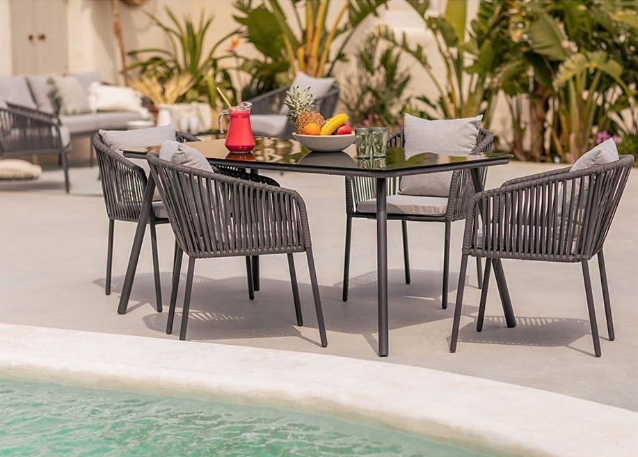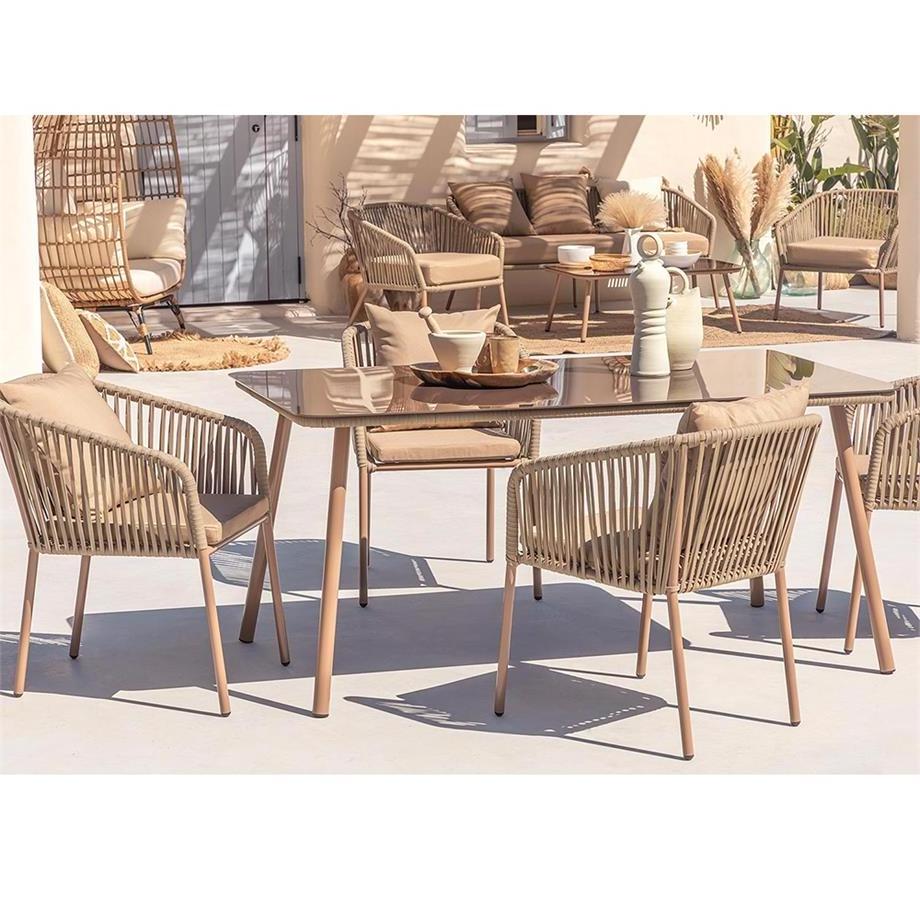 YOHO OEM Garden Patio Outdoor Dining Sets 4-6 People Modern Outdoor Restaurant Furniture Rope Dining Chairs Outdoor Dining Table