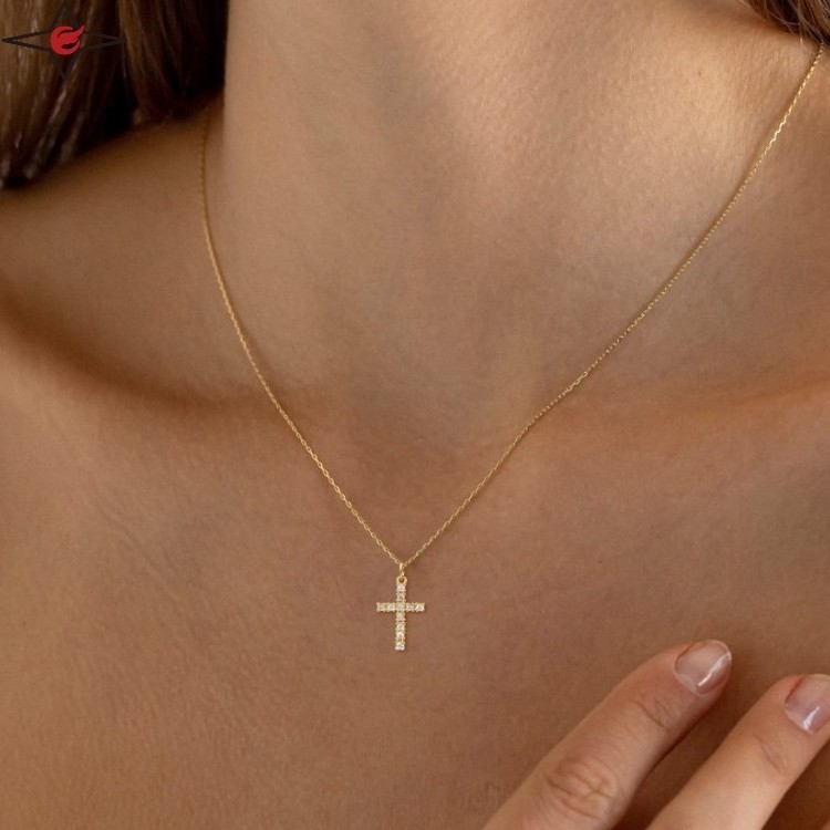 Custom 18k Gold Cuban Small Gold Diamond Necklace Stainless Steel Tiny Titanium Cross Necklace