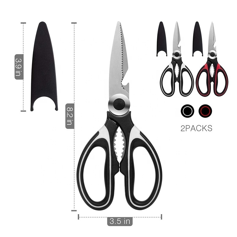 【MEANINGFUL ADDITIONAL FUNCTIONS】 In addition to widely used in the kitchen this scissors has more uses, which can cutting cardboard, papers, hard plastic, flowers or for heavy duty gardening like breaking up branches or metal wire. They also make ideal camping and bbq scissors and are small enough to easily pack with your gear.
