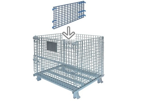 2.Standard half-hinged gate access 3.Square-stack leg - secure stacking 4.Open wire mesh design allows for full visibility for inventory checks, ventilation and cleanness. 5. Easily moved around by forklift, even when fully loaded |