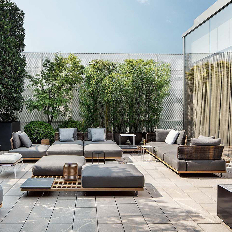 | Material | Aluminum + PE rattan + teak wood+ Imported foam and fabric |
