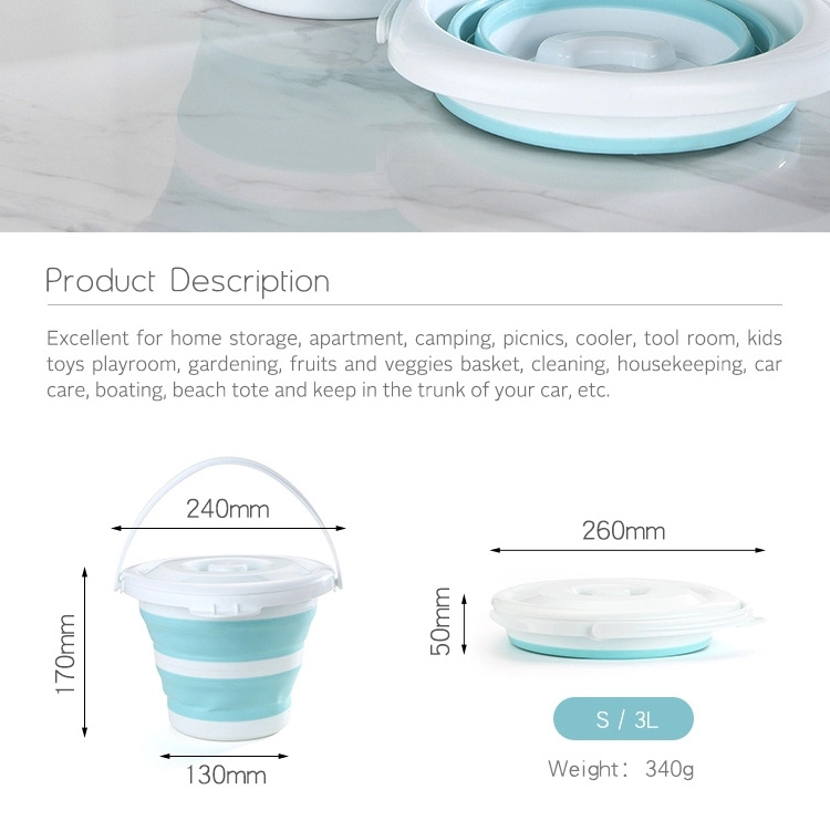 Silicone 3L 5L 10L Outdoor Durable Flexible Foldable Car Washing Fishing Collapsible Water Bucket Custom OEM Customized