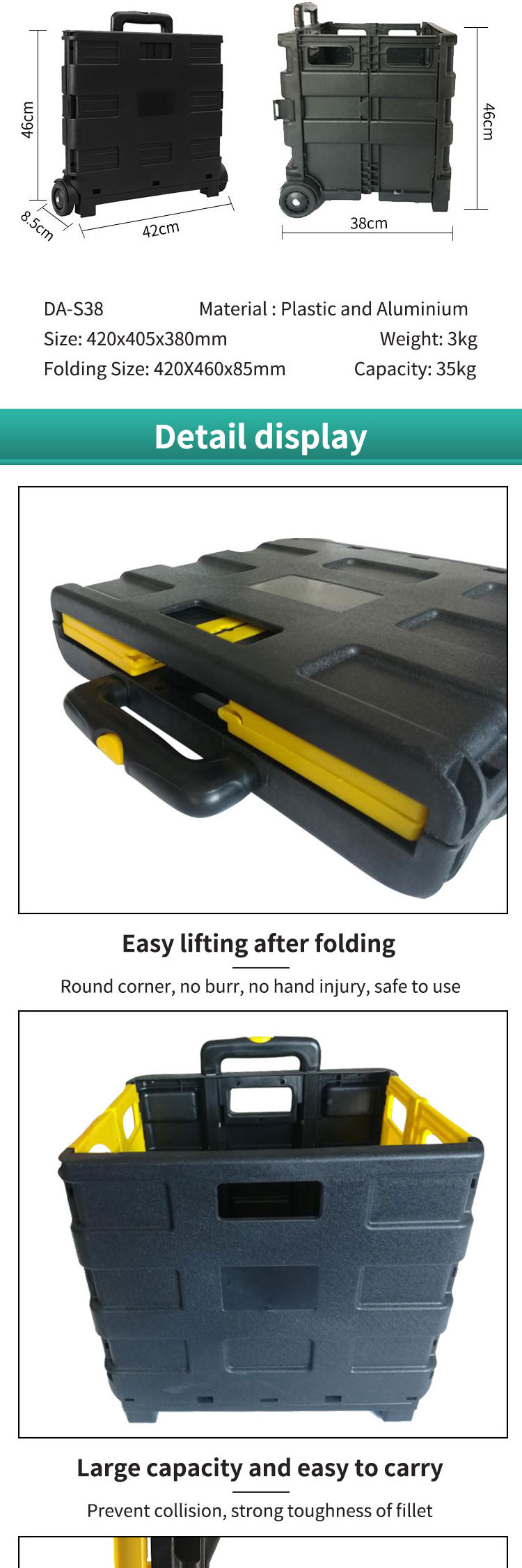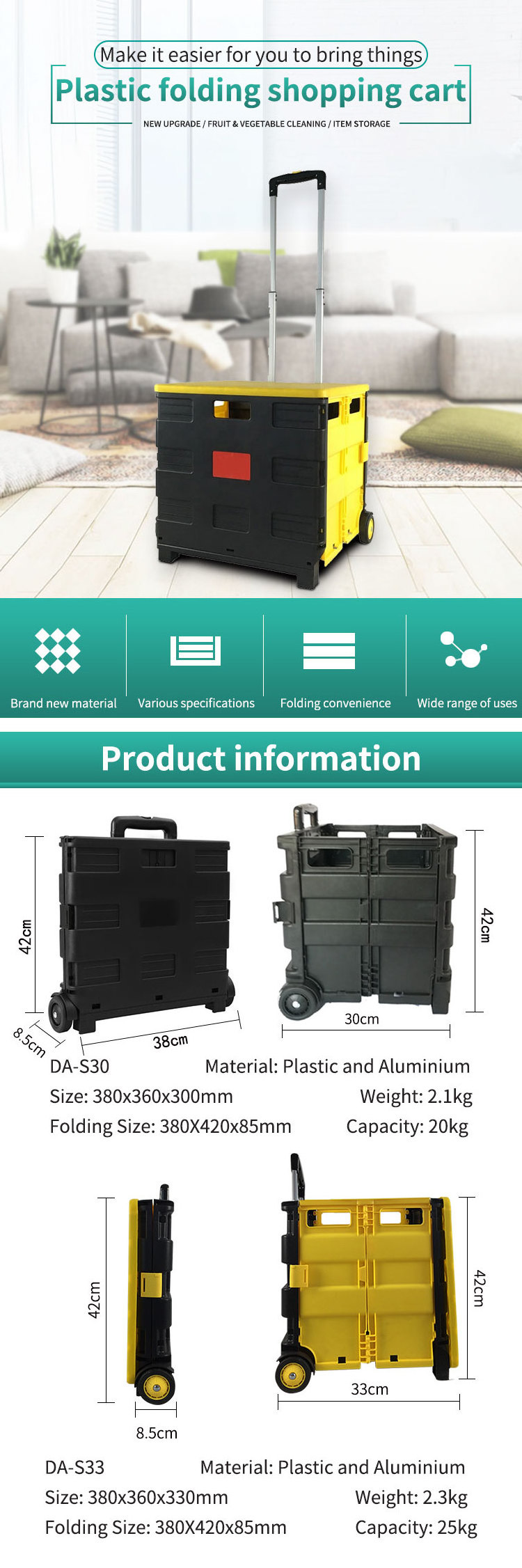 Korea Traveling folding Rolling Lightweight extendable Multi-purpose Plastic luggage hand cart shopping folding trolley