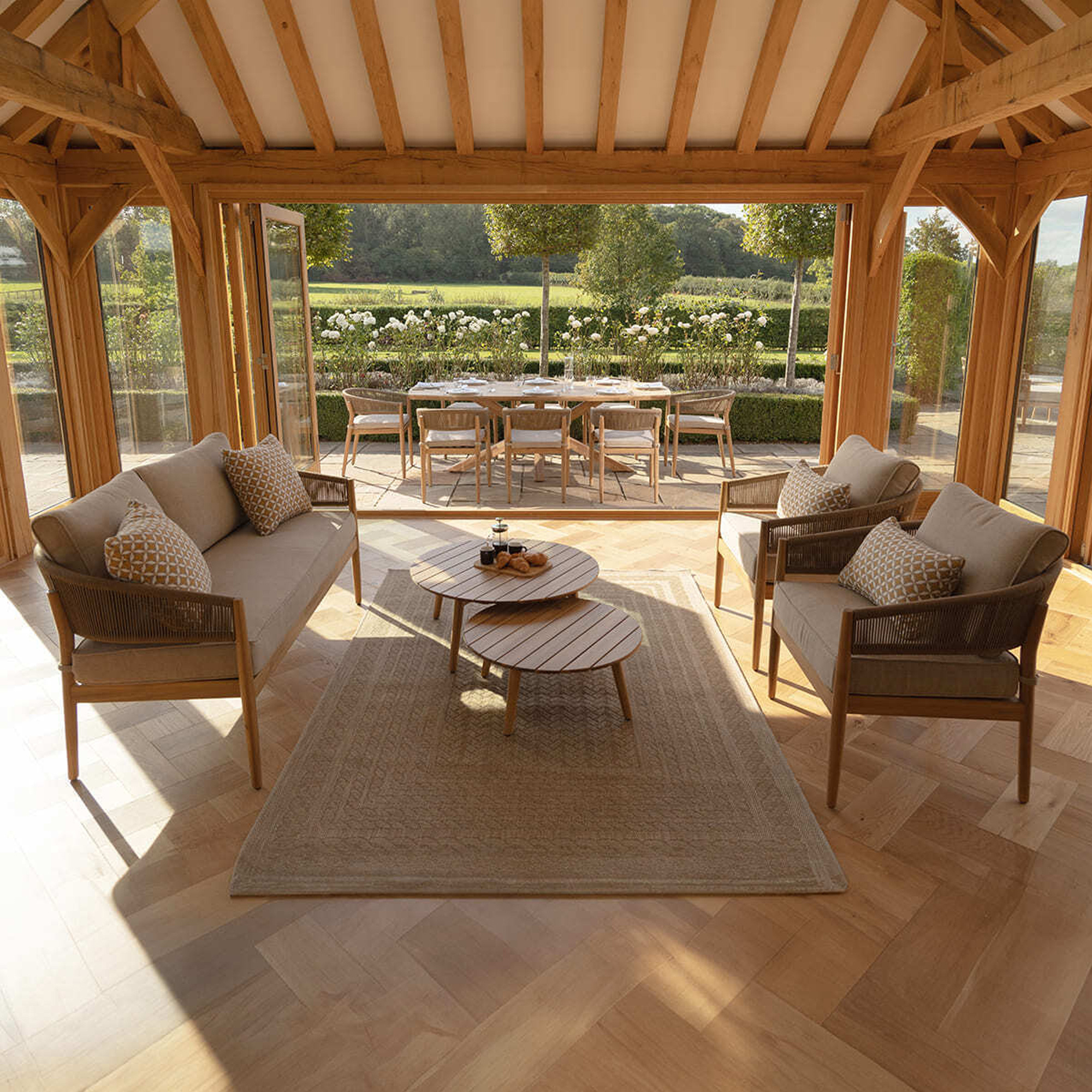 Set Sofa Minimalist Patio Outdoor Solid Teak Wood With Rope - Juno