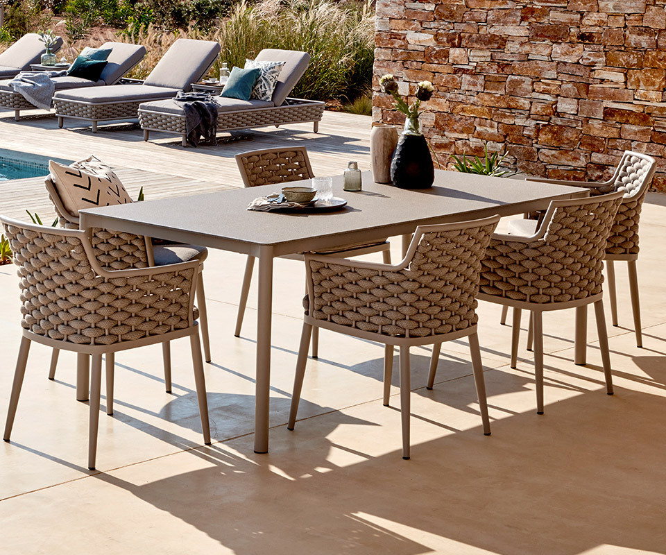 Outdoor Hotel Furniture Villa Garden Patio Table And Chair Aluminum Frame Rope Woven Outdoor Dining Table And Chairs