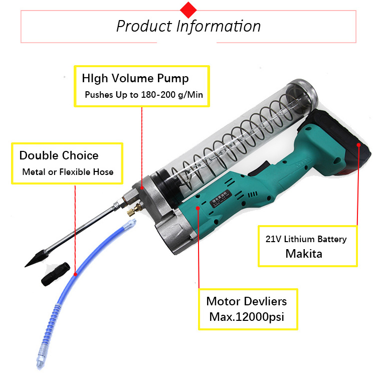 * High-volume pump of the battery grease gun pushes up to 4.2 oz/min high-flow applications.