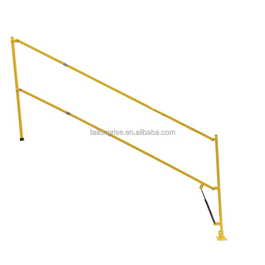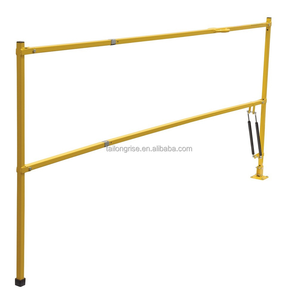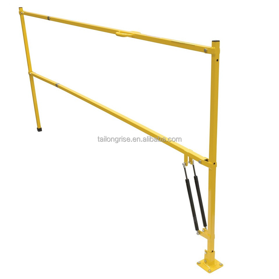Safety lift gate can be simply lifted and the self folding action folds the gate in a vertical position