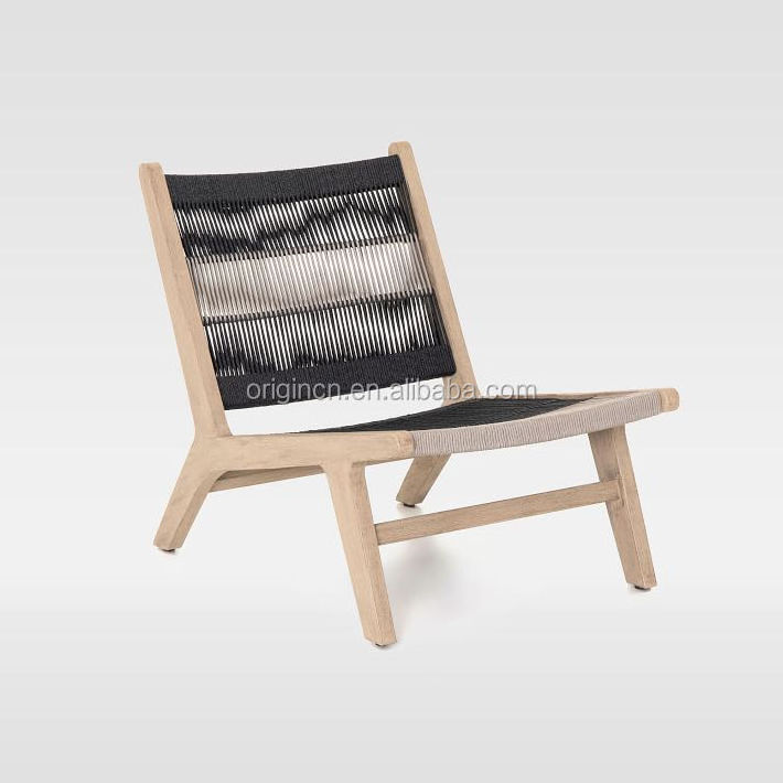 Garden furniture low seat stool wooden looking woven rope outdoor chair bistro