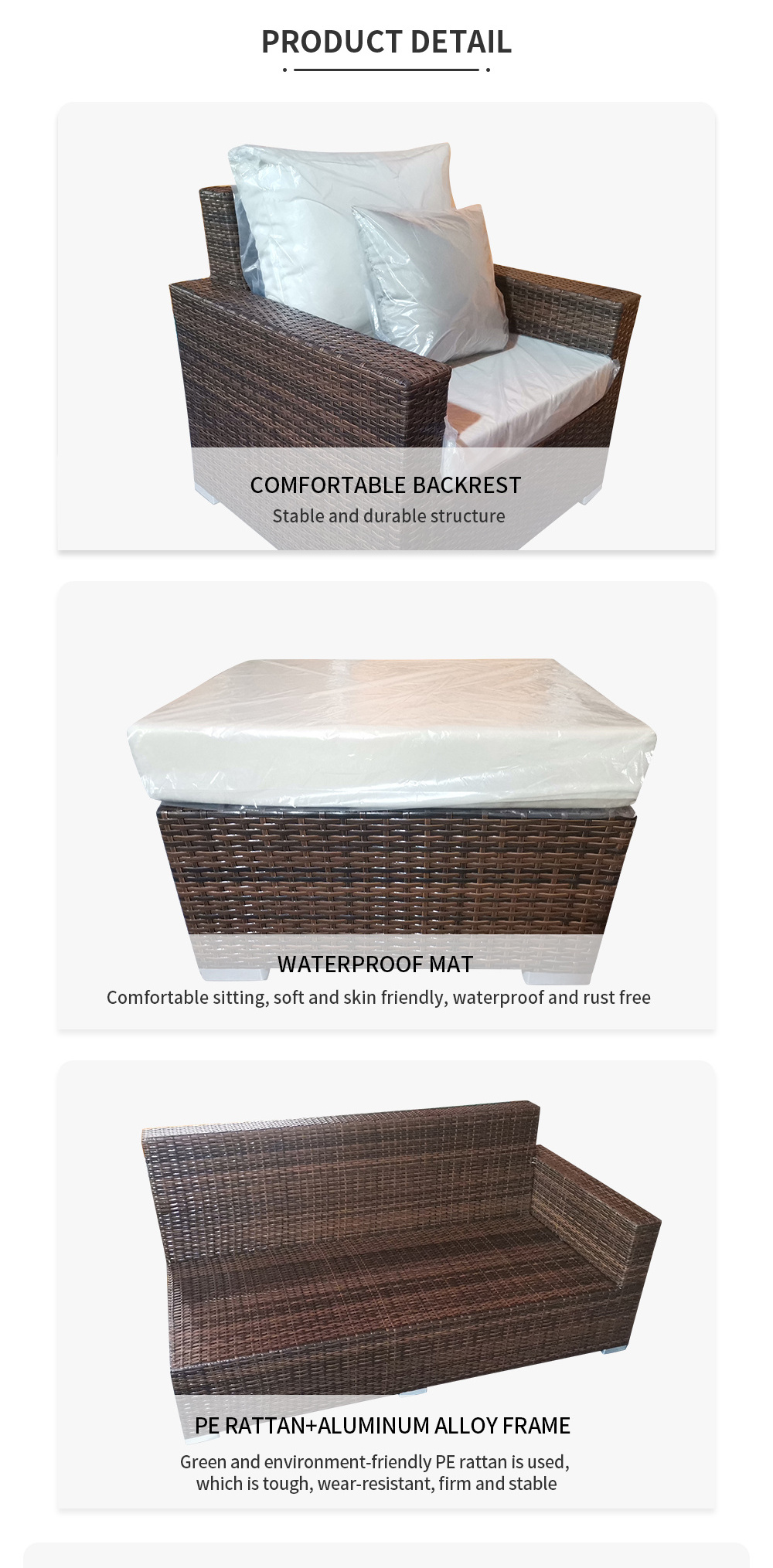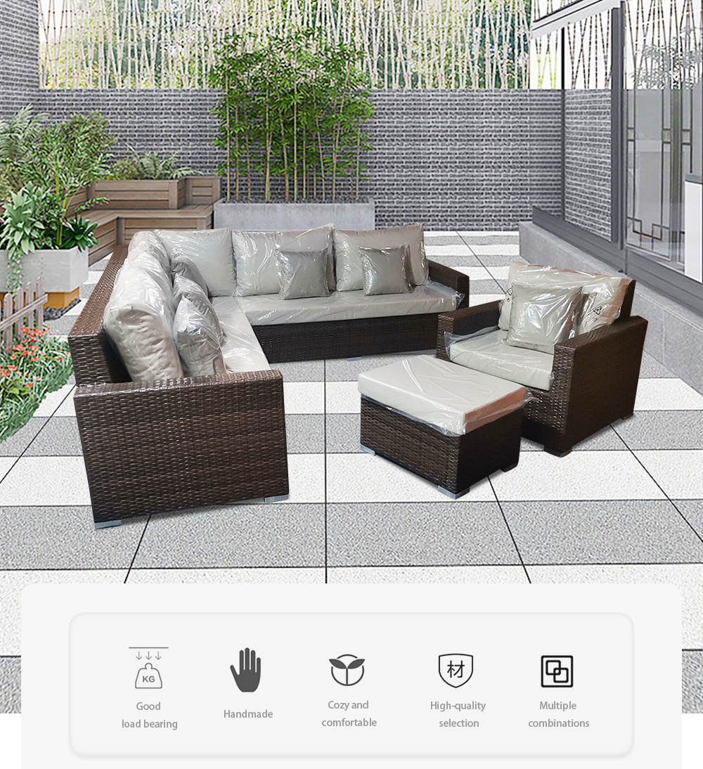 PE Rattan Aluminum Frame with seat cushions with back cushions with pillows