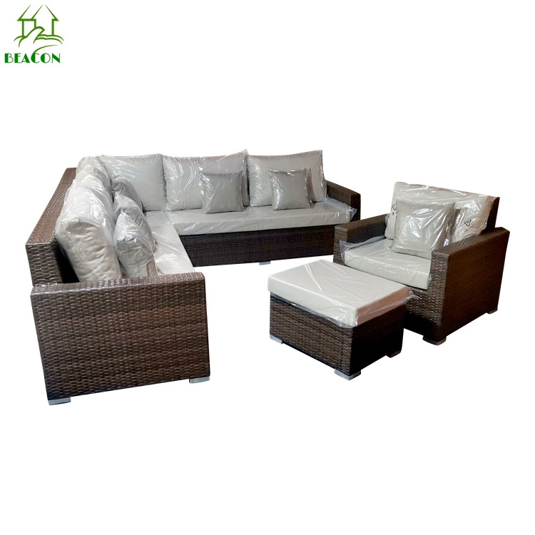 Outdoor Comfortable Popular Mordern Good Quality Ratten Sofa Set with Fabric Cushion
