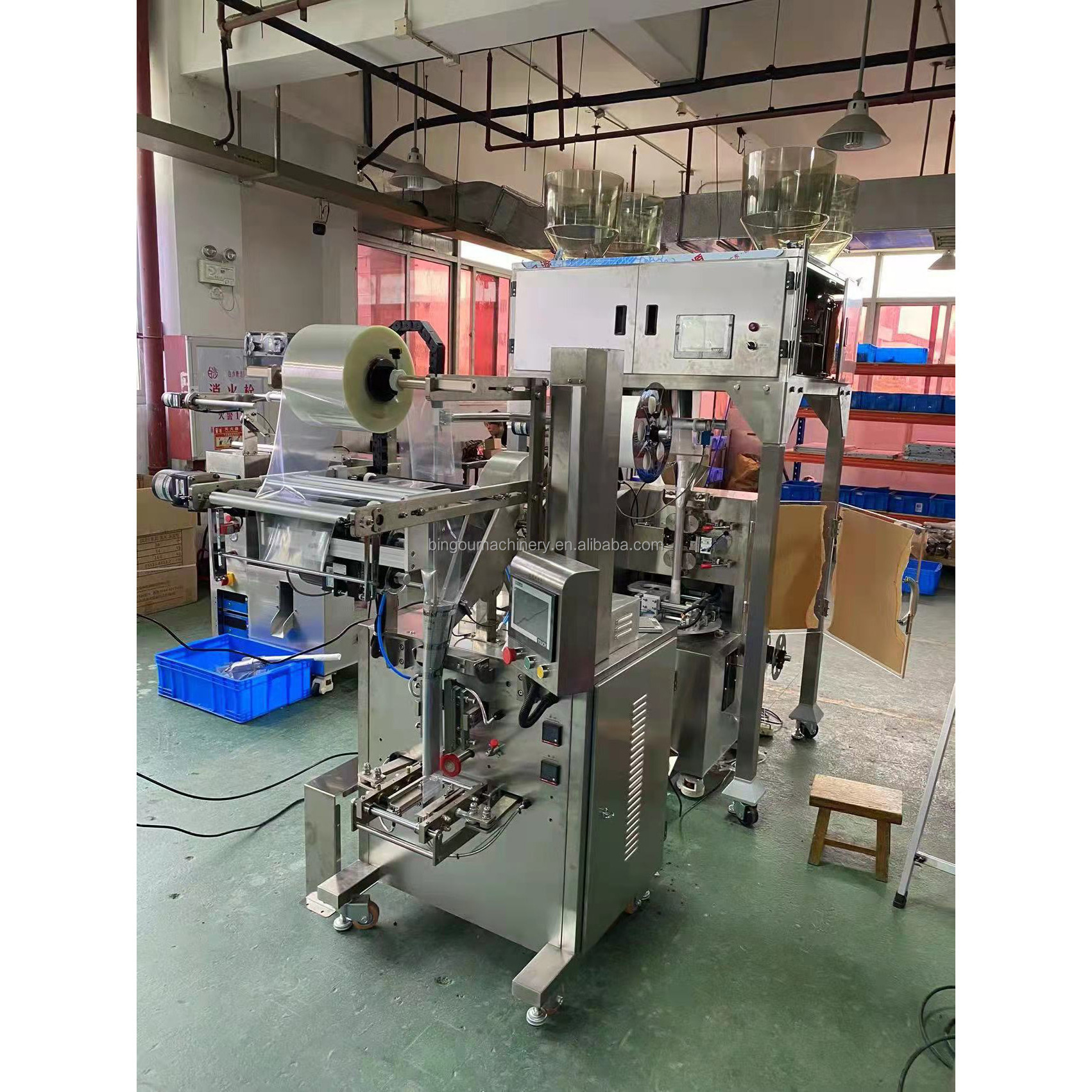 This machine is suitable for packing tea, medical tea, healthy tea, and other small granule teas, packed in inner bag and outer bag for one time. Inner bag is triangle or flat bag style.