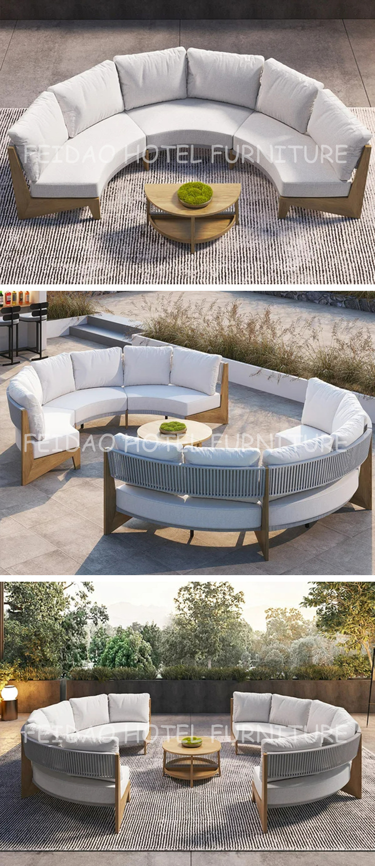 Teak Half Round 8 Pieces Curved Modular Outdoor Patio Set Garden Sofas