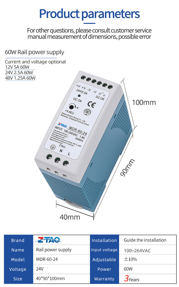 60w 24v Smps 5v 10a 12v 5a 24v 2.5a Switching Power Supply for Led