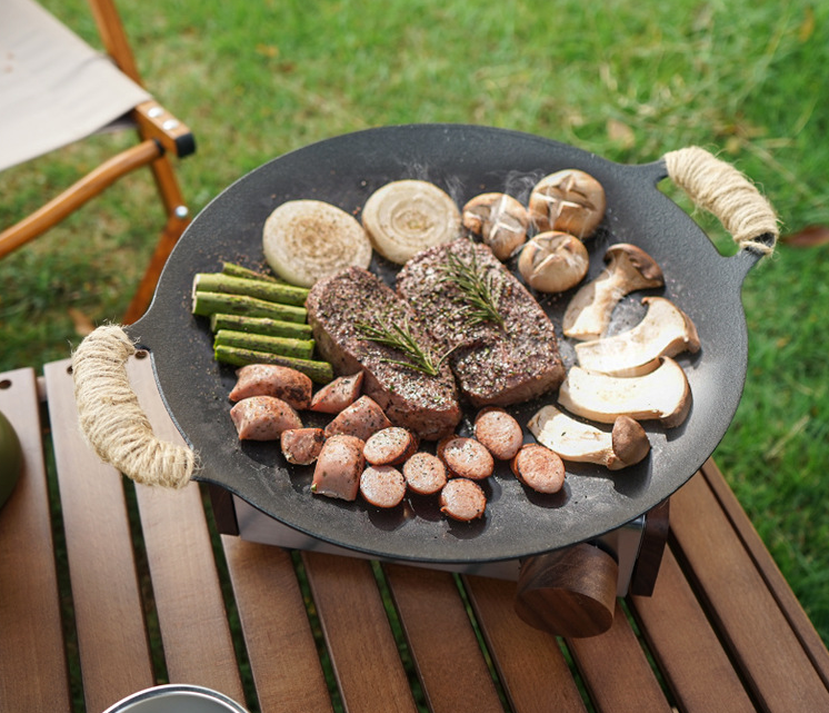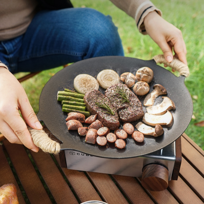 * The cast iron pan comes pre-seasoned by factory. For the better seasoning become, we recommend you reseason it before first use and maintain after each use.