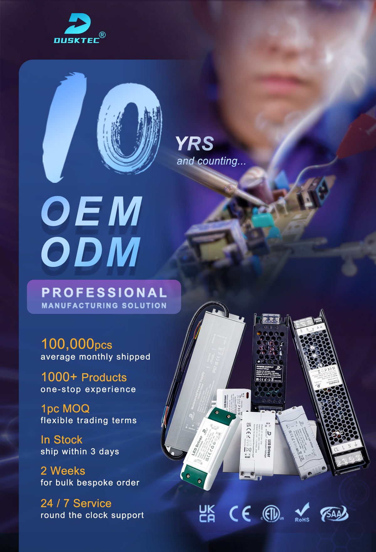 Dusktec is a market driven research and development supplier in switching power supply.