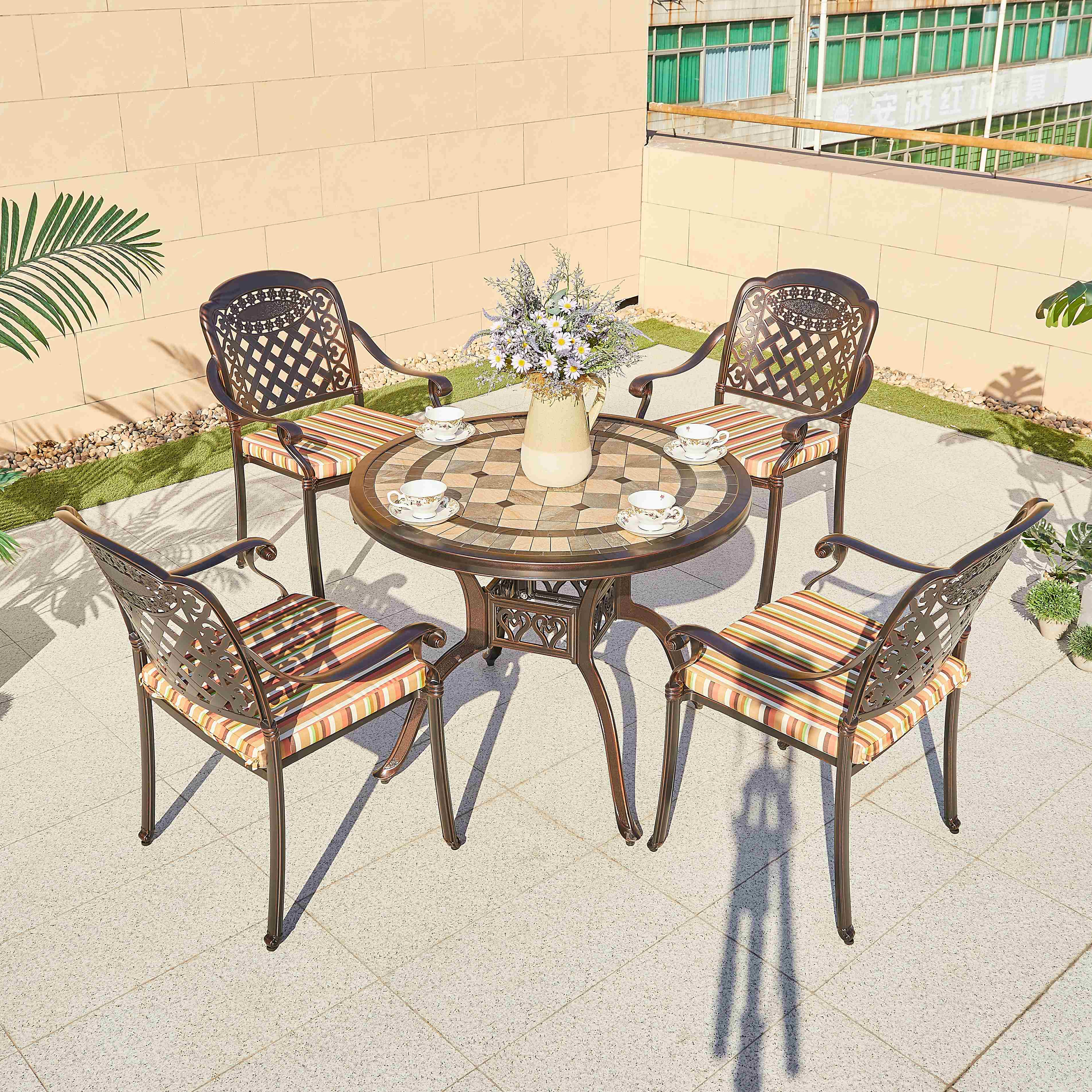 full cast aluminum parts+ceramic tile table top