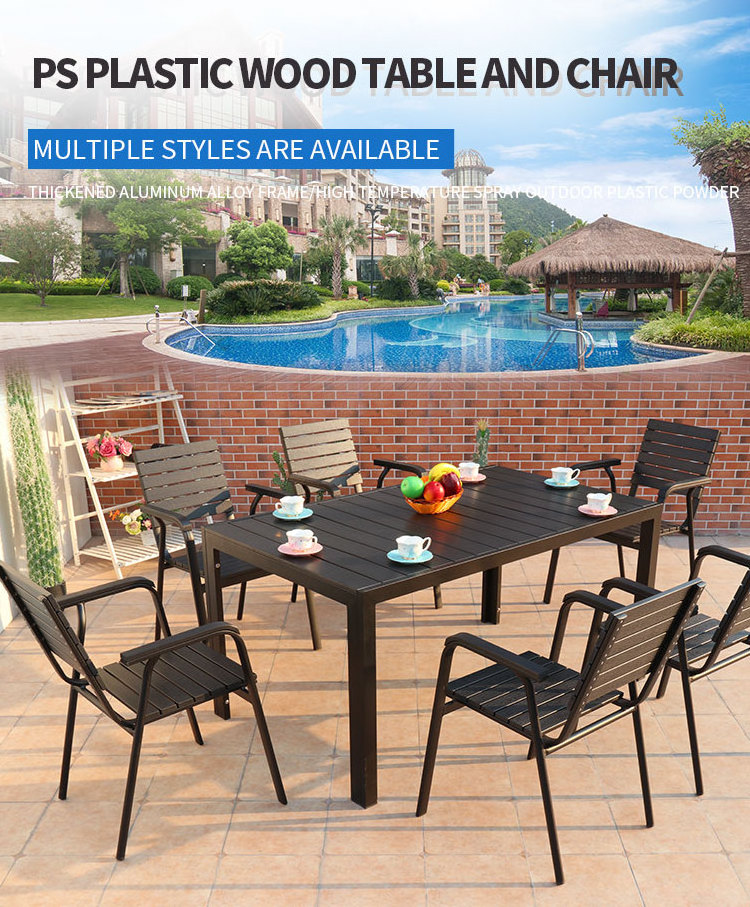 PS plastic wood and aluminum alloy tables and chairs are suitable for restaurants, gardens, terraces, parks, commercial streets, municipal engineering and other projects.