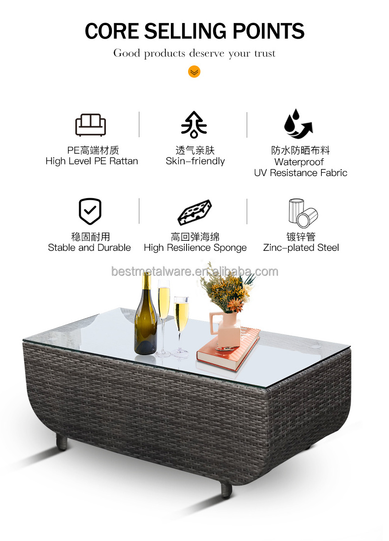 KD steel rattan wicker garden sofa set with storage