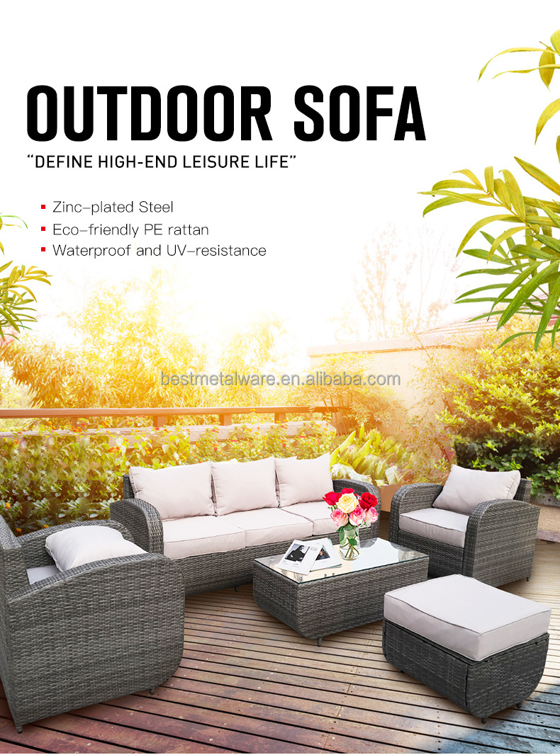 KD steel rattan sofa set w/ cushion