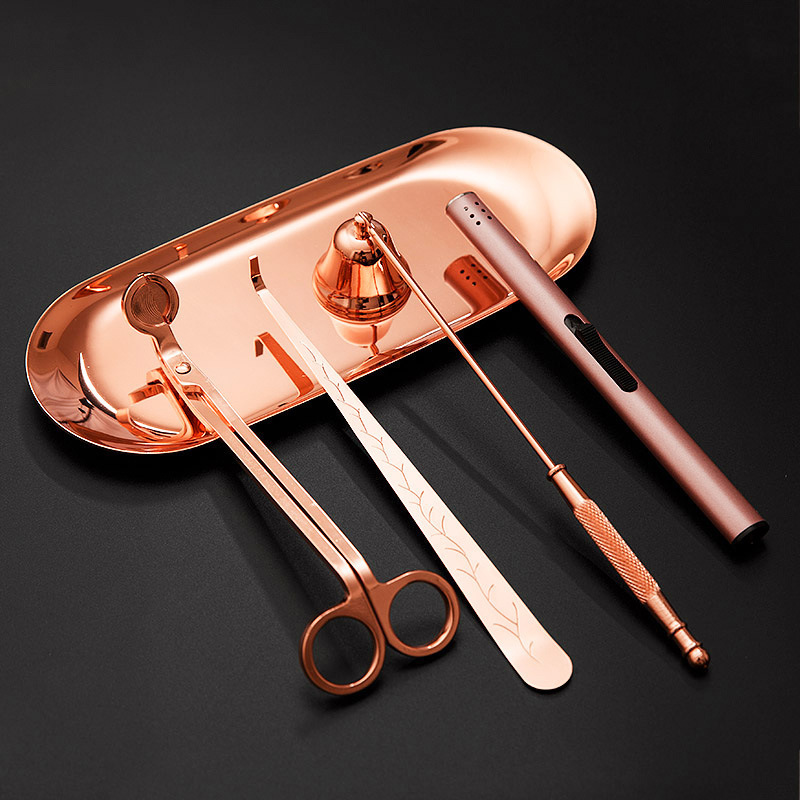 Candle wick cutter, candle extinguishing cover, candle extinguishing hook, storage tray