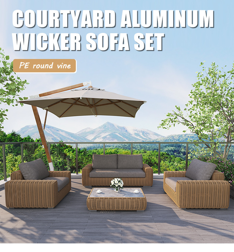 Fulin Modern Waterproof Aluminum Pe Rattan Creative Nordic Balcony Outdoor Furniture Conversation Garden Outdoor Rope Sofa