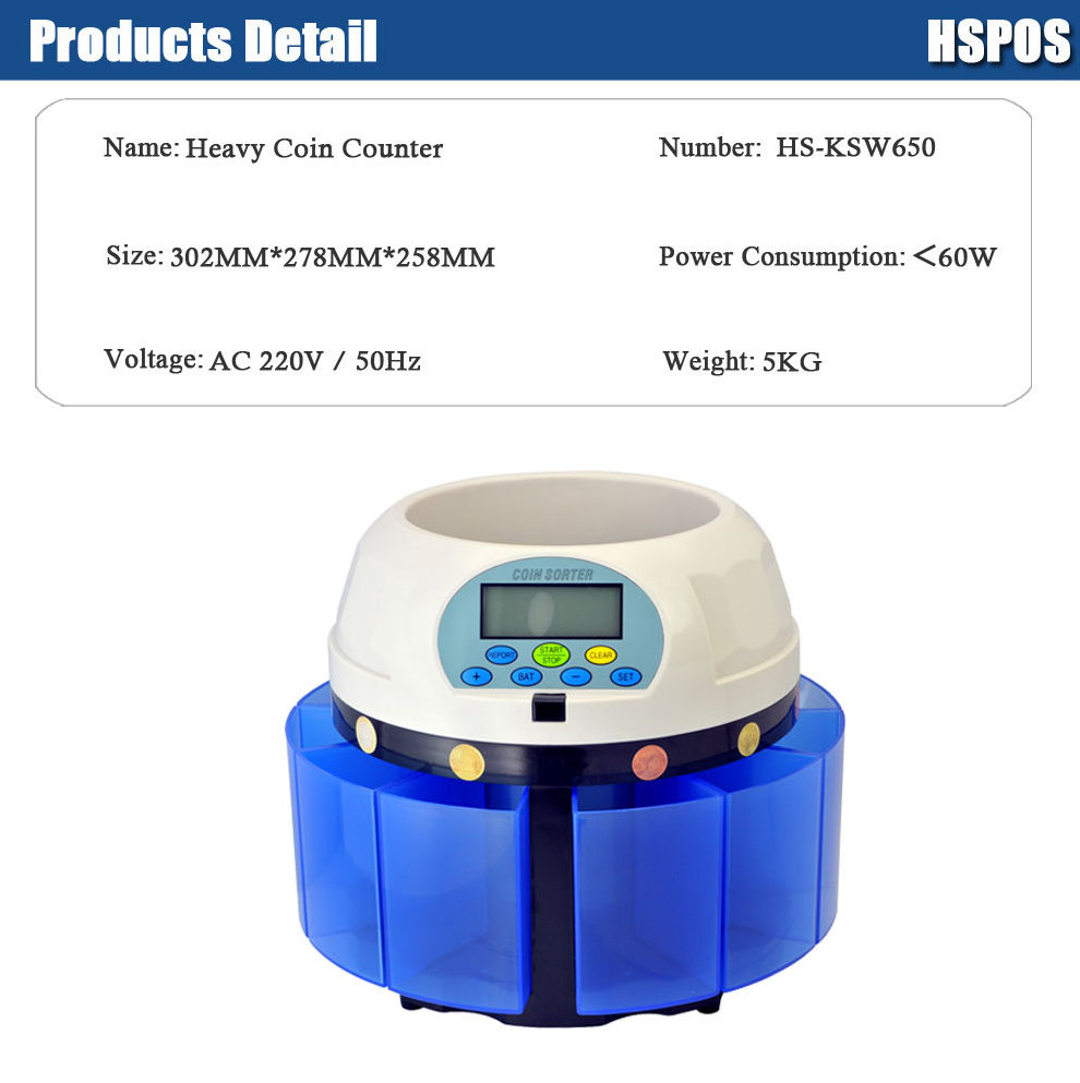 Heavy Coin Counter HS-KSW650 Automatic Money Sorter & Coin Counter Cash Currency Counting Machine
