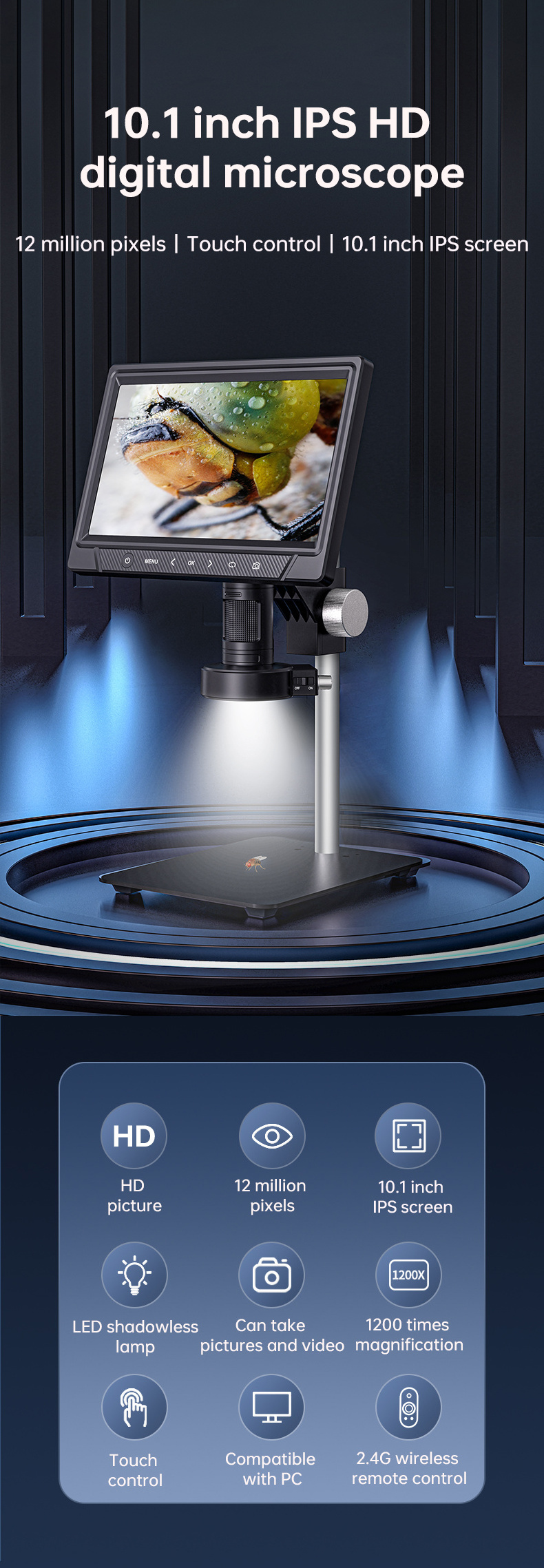 Digital microscope with 10.1-inch IPS high-definition display screen
