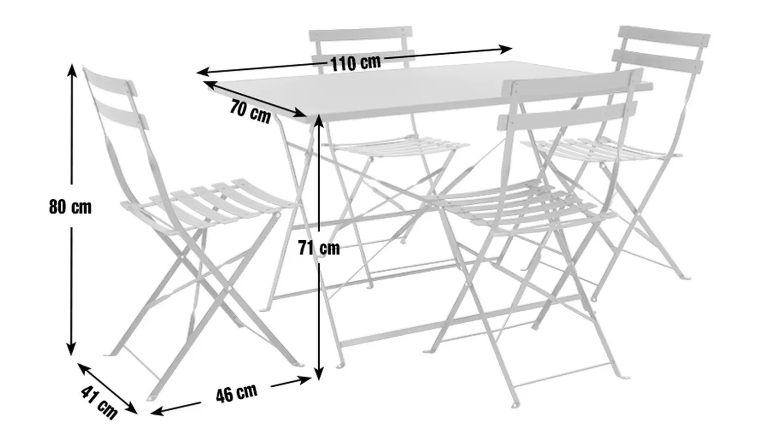 Chair Size:W41xD46xH80cm Table Size:W110xD70xH71cm Weight:20.7kg Package 1 Size:W97xD43xH21cm Package 2 Size:W7xD110xH71cm |