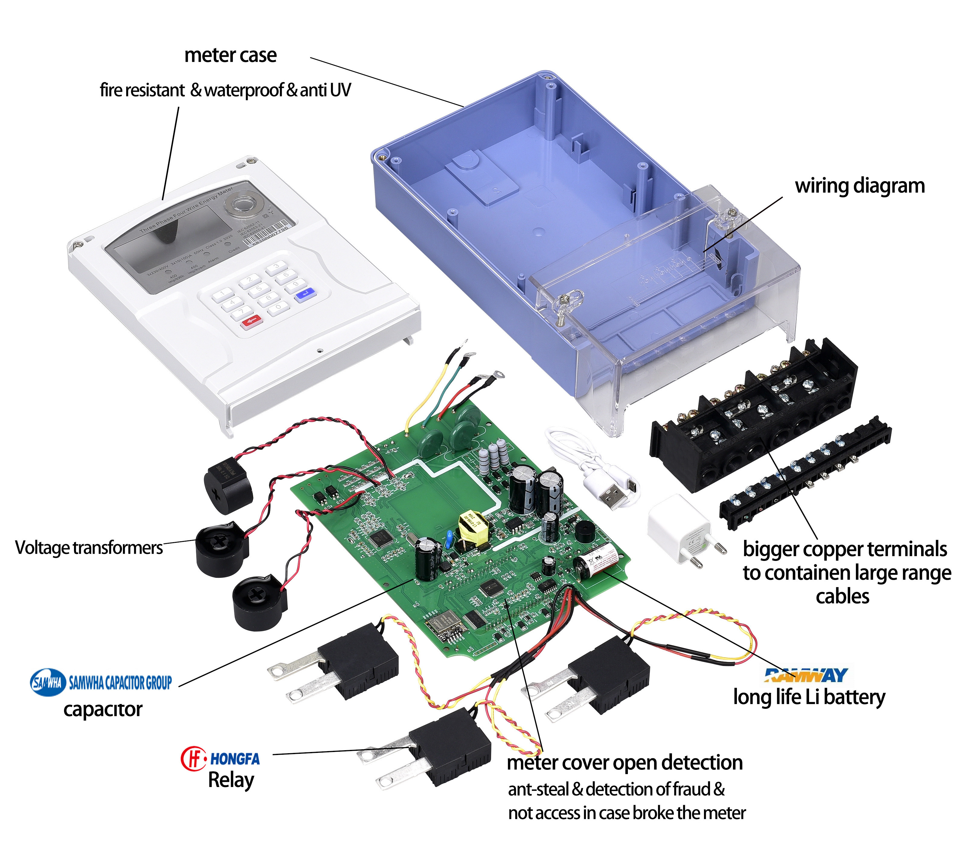 The integrated keypad of three phase electricity meter is offered to enter recharge TOKEN and check information by short codes.
