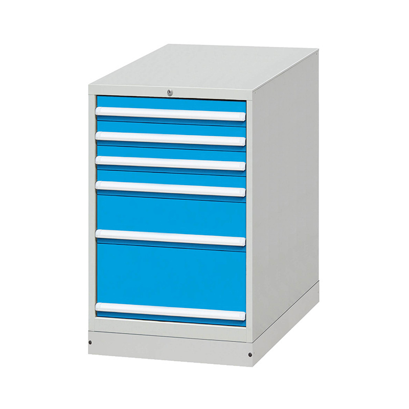 The tool cabinet is made of 1.0-1.2mm cold-rolled steel plate as a whole, consisting of 6 drawers with heights of 100mm * 4,200mm * 1,300mm * 1. It has a single track structure, and each drawer can bear a weight of 100kg. The cabinet is gray white, and the drawers are blue. Only one drawer can be pulled out at a time to prevent multiple drawers from being pulled out at the same time and causing the cabinet to tilt. The size and color can be customized according to needs, and it is widely used in various work scenarios.