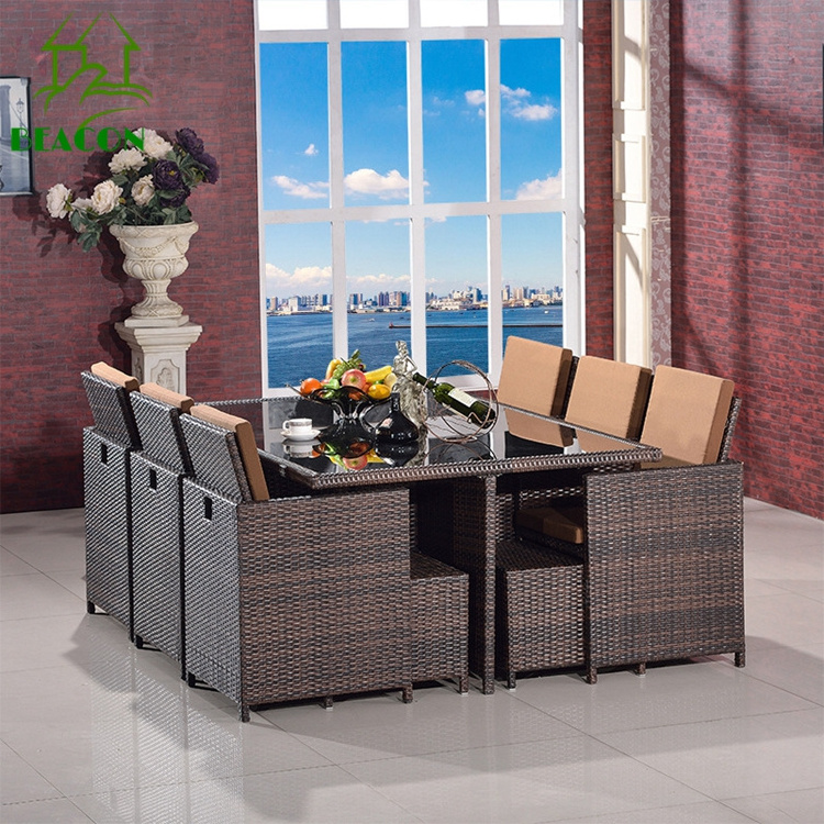Classic style PE rattan aluminum waterproof outside patio lounge furniture outdoor gardenm dining set