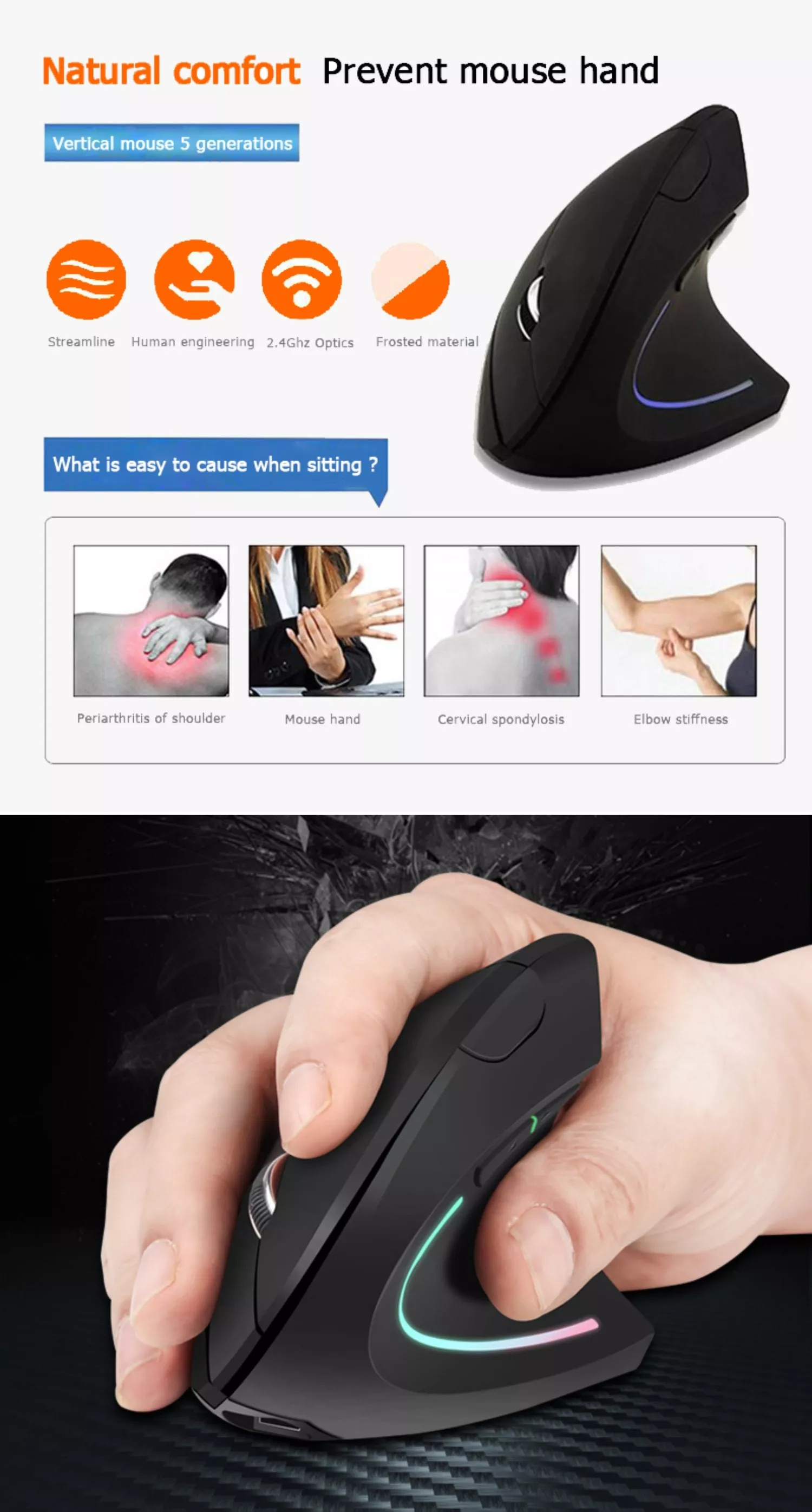 Spot ergonomic rechargeable mute 2.4G wireless vertical mouse cross-border creative vertical right-handed sliding mouse