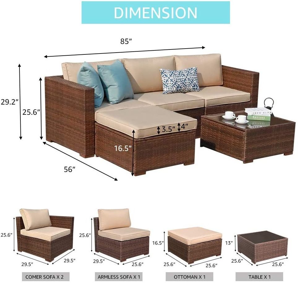 * Deep-seating cushions stuffed with a 4-inch thick sponge provides greater comfort and relaxation.