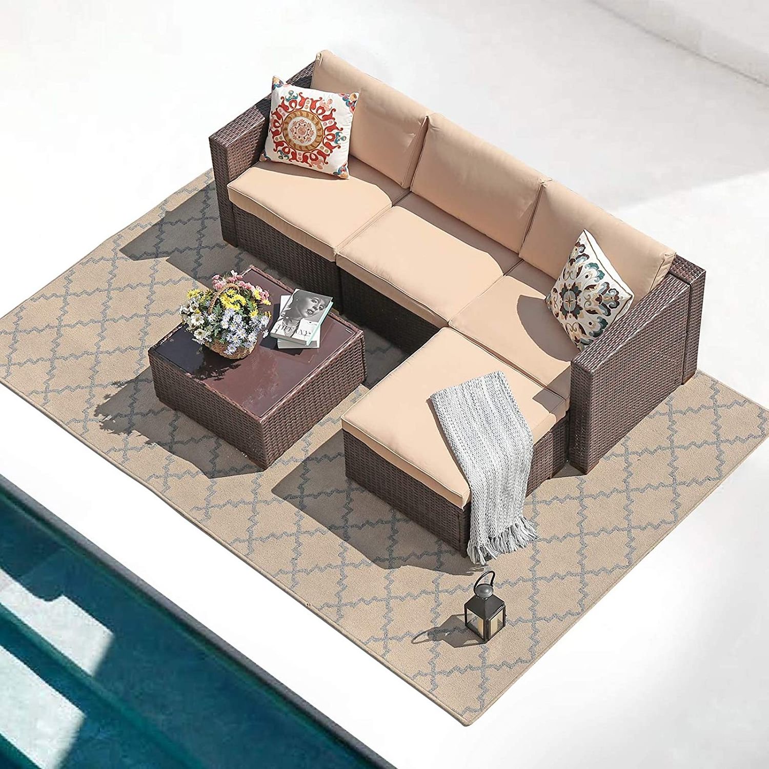 Comes with 4-inch thick lofty sponge padded cushions and clips included for the underside of the furniture pieces to keep them