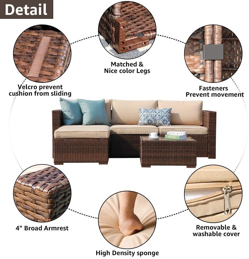 * Materials: PE wicker, steel frame, polyester cover, sponge