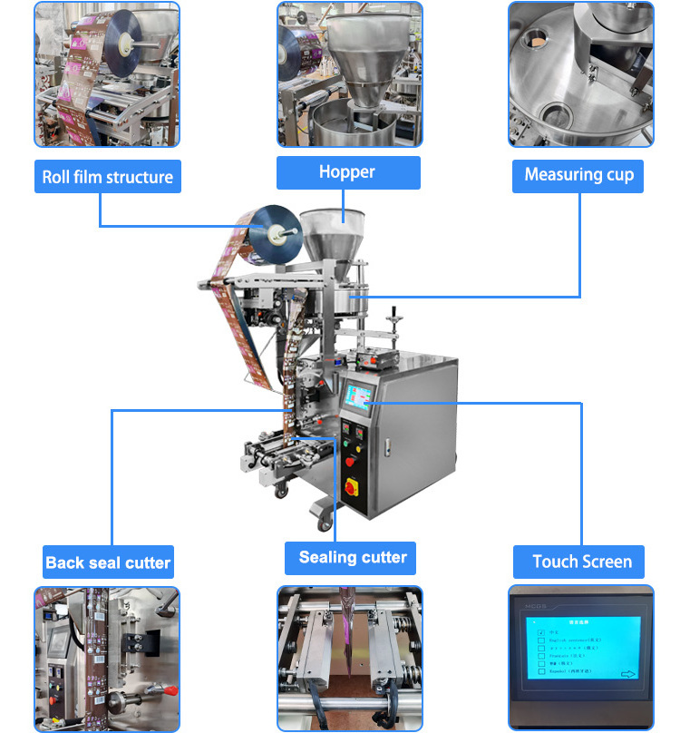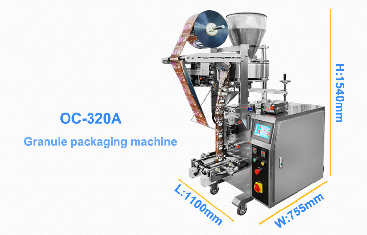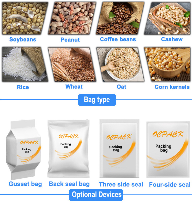 Suitable for packaging granular objects such as soybeans, peanuts, coffee beans, cashews, rice, wheat, oats, corn kernels, etc.