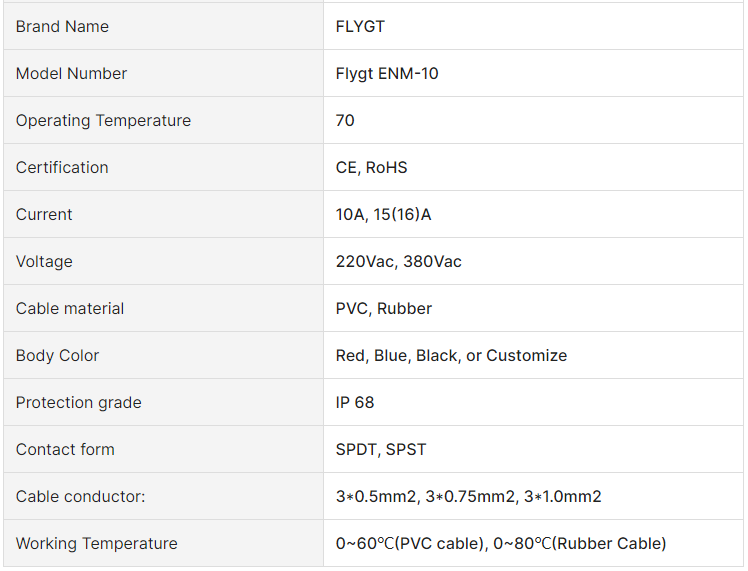 Liquid level switch FLYGT ENM-10 float switch 20m cable