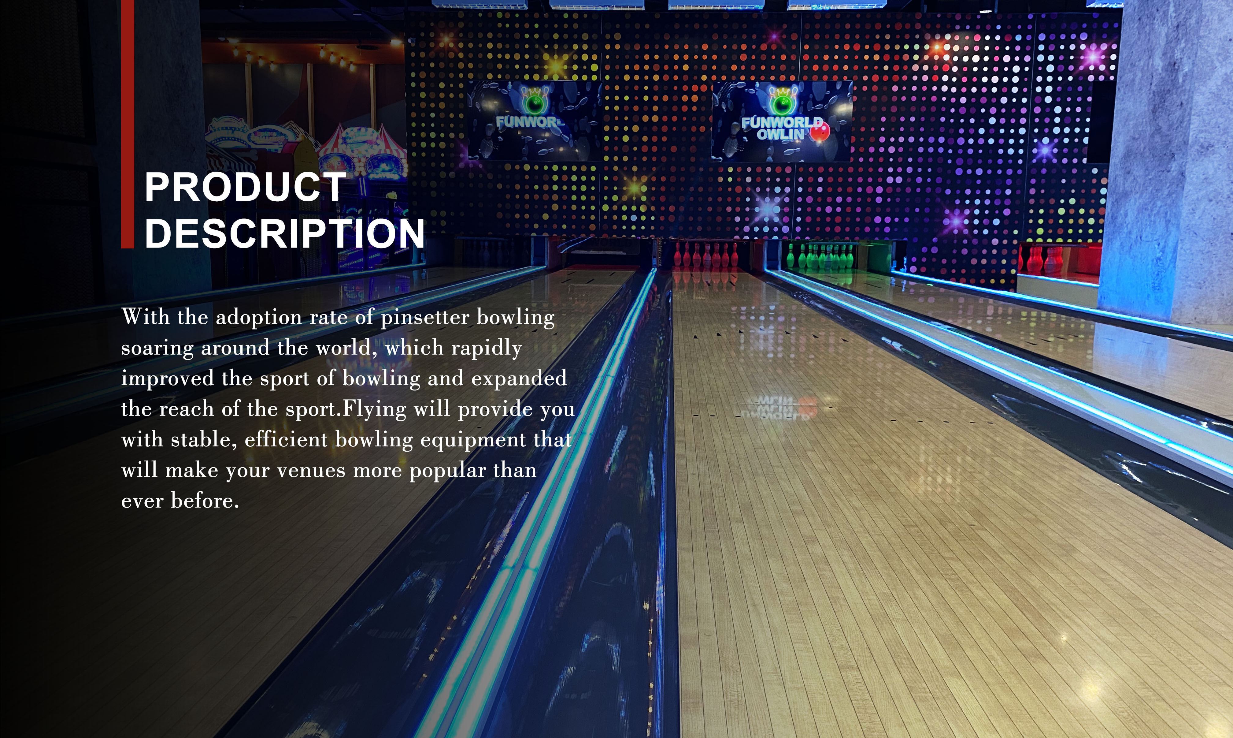 FLYING String bowling equipment plays 30%-50%innings per hour than Brunswick equipment. It use shalt a power of Brunswick bowling equipment,low noise! |