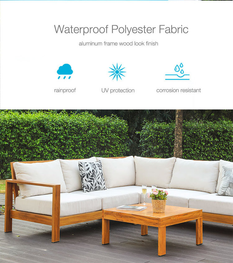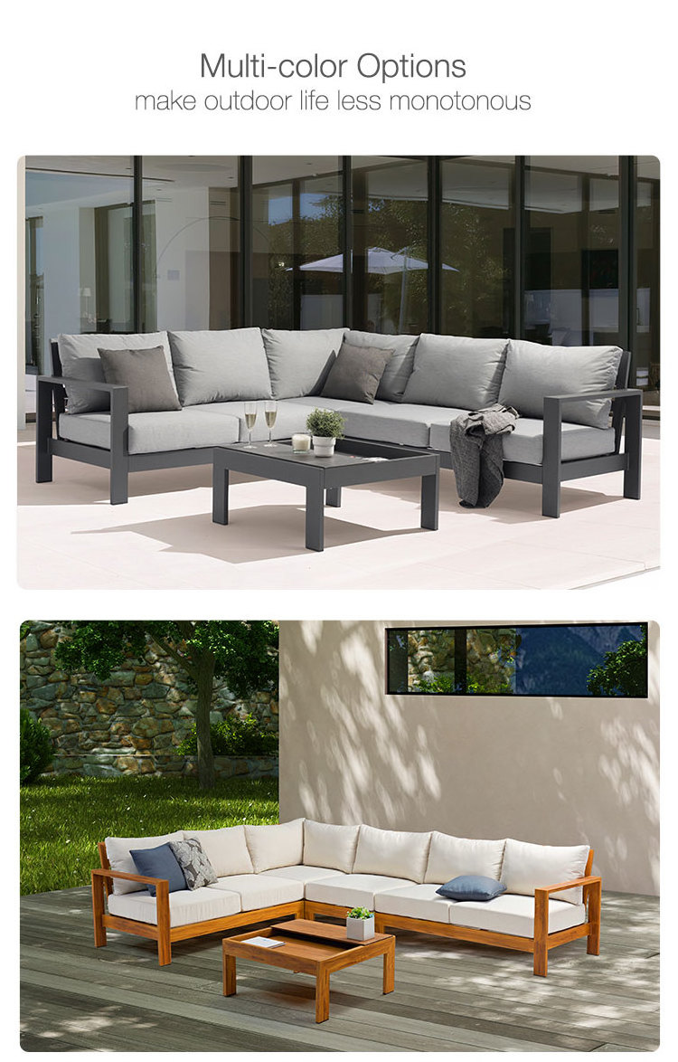 Uland Modern hotel furniture Custom Garden Furniture L Shape Aluminum Cushion Lounge Outdoor Couch Sofa Set