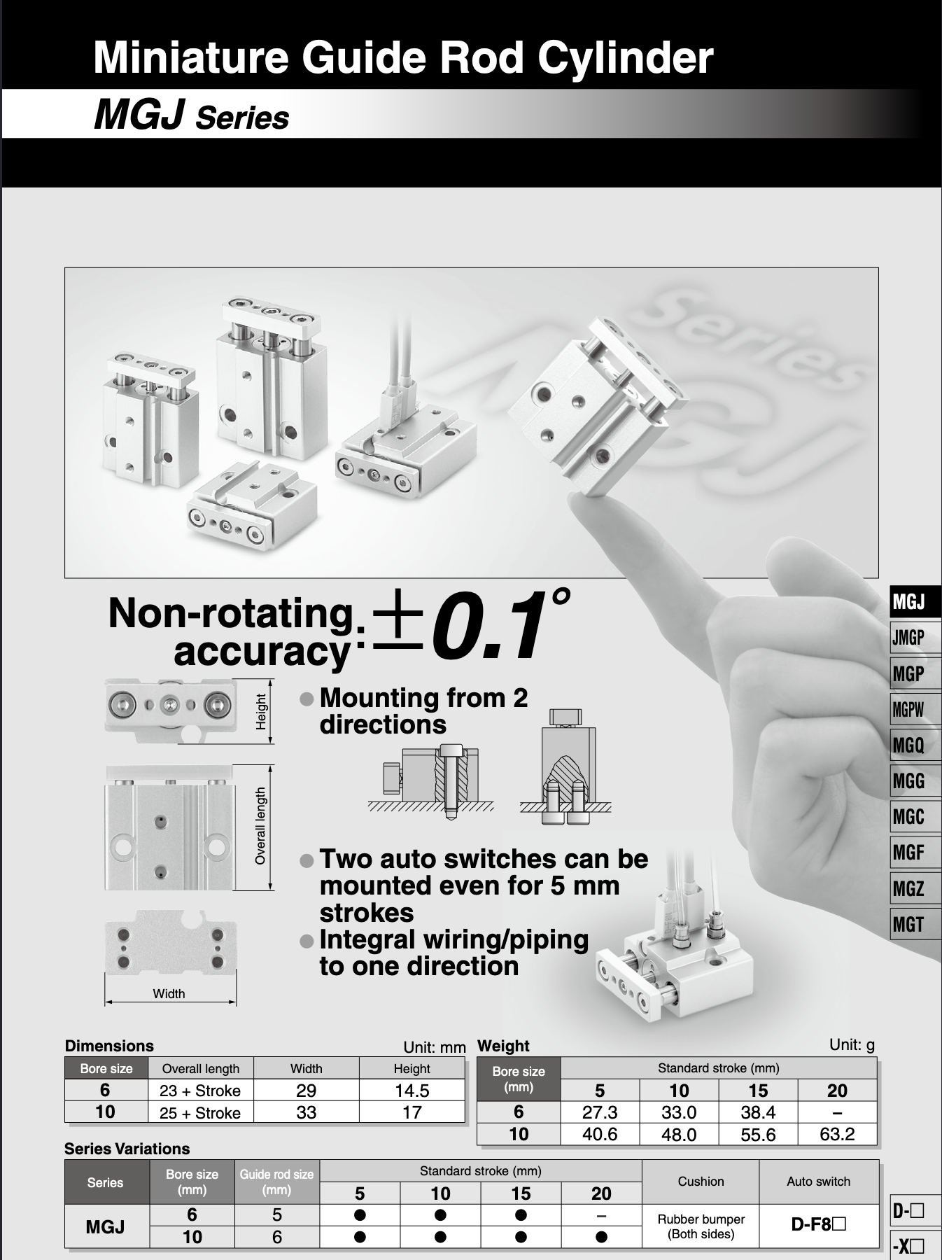 MGJ10-20 MGJ10-10 MGJ pneumatic cylinders small compressed miniature air cylinder with linear guide rod Actuator smc type