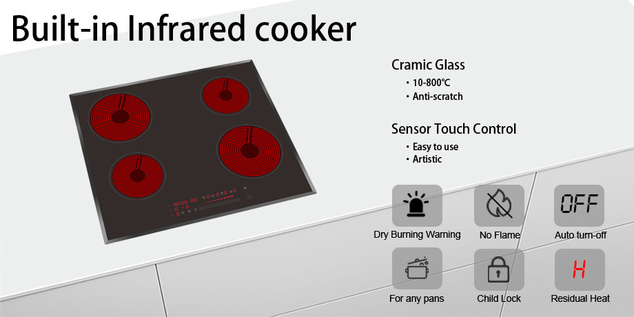 wifi Smart Tuya App Factory Directly Offer 220V Four Burners Electric Hob ceramic hob For Counter Top home kitchen