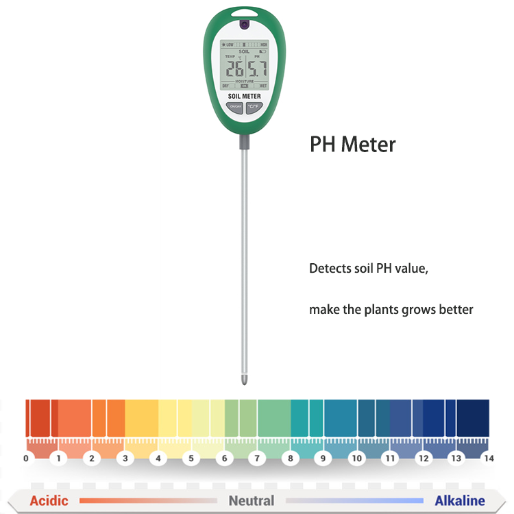 OEM 4 In 1 Digital Soil Moisture Temperature Illuminance Light Tester Soil Test Compost Thermometer PH Meter For Gardeners