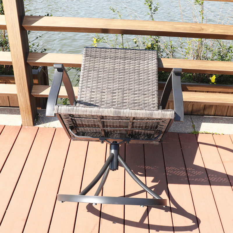 Best Selling Outdoor Rattan Dining Set Modern Garden Furniture with Swivel Chairs and Round Tempered Glass Table for 2 people