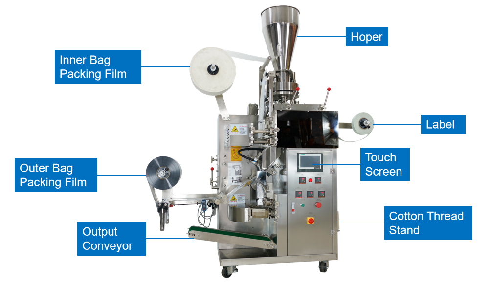 Fadekang multi-functional tea packaging machine suitable for all kinds of teabag packaging.Such as bulk tea, herbal tea,health tea, flower tea, tea powder, coffee powder and other internal and external bags are disposable packaging.