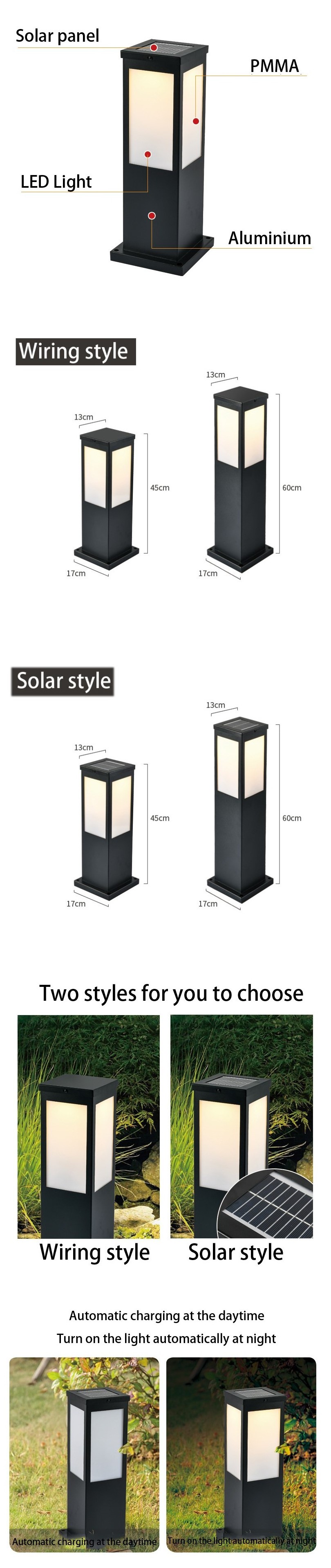 Outdoor Lawn Lamp Gate Pillar Post Garden LED Solar Bollard Light