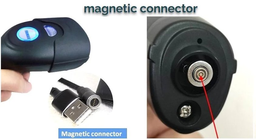 To address the issue of damage caused by frequent plugging and unplugging of the type C connector, we have upgraded our gun type bluetooth barcode scanner with a magnetic suction connector. This change significantly reduces the probability of connector damage and makes charging incredibly easy.