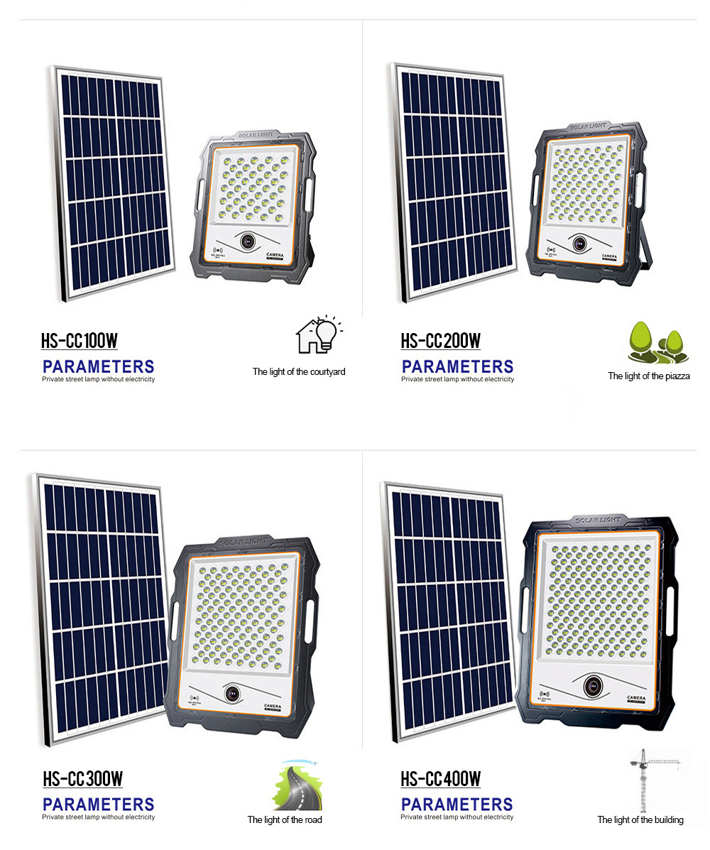 Solar LED Flood Light 100W 200W 300W 400W with CCTV Camera Panel System for Indoor Outdoor Wall Garden Yard Street Park Lighting