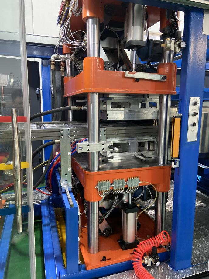 HW-7185 high-efficiency program-controlled plastic air pressure thermoforming machine, applying the latest international plastic sheet forming technology, is integrated design of machine, electricity and gas, using microcomputer and industrial control programmable PLC control, the entire system HMI. The square tunnel-type imported radiant heater, both concave and convex molds can be formed, laser blade punching, and its process flow: heating, forming, punching, stacking counting and other main multi-station production lines.