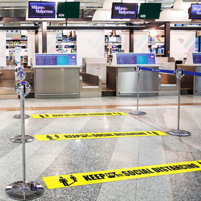 Social Distance Blue Waterproof Self Adhesive Pvc Vinyl Floor Sticker